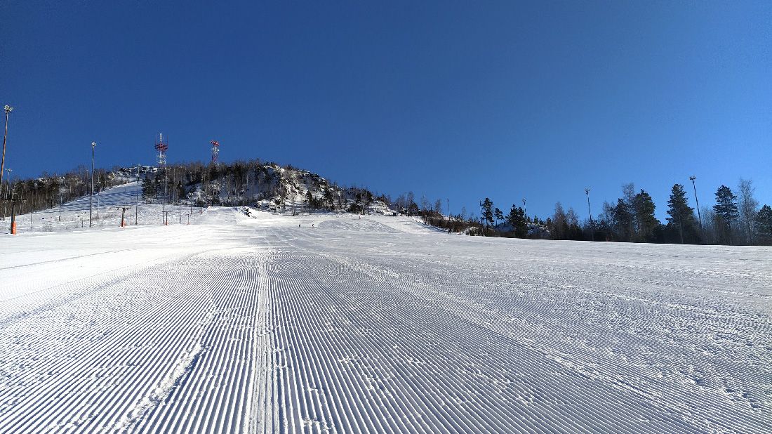 Небольшой и средний уклоны, сине-зелёные трассы с шириной от 40 м, ровный, плотный снег |