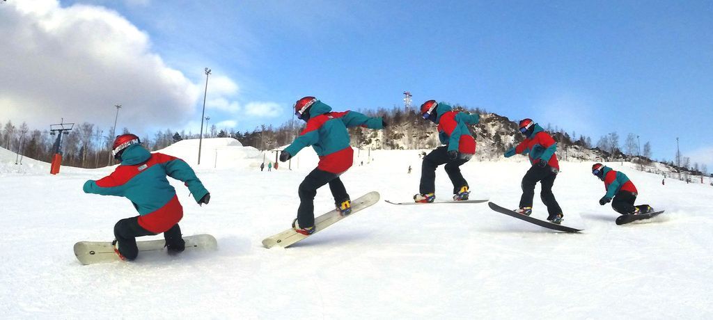 Поворот с перекантовкой в воздухе используют спортсмены при катании на больших скоростях. На небольших уклонах он помогает развлечься и кайфануть. Чем жёстче доска, тем больше энергии будет запасено для прыжка
